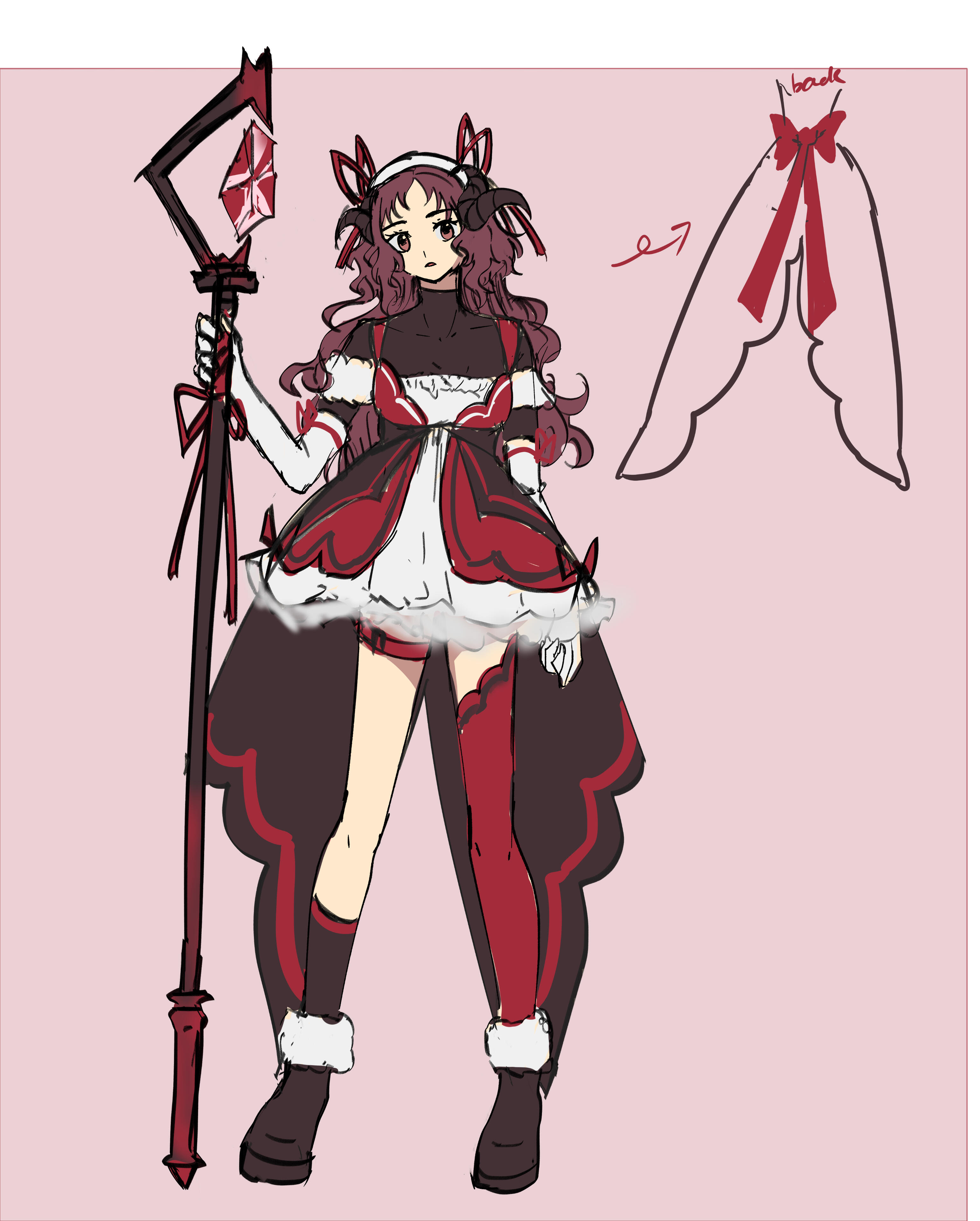 As an adventurer mage, she crafted a lance that doubles as staff, even though she does not really need staff/ chant as her spell are chant less and can be handled easily.